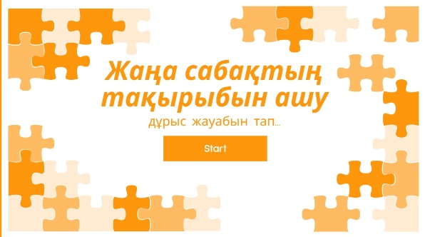 Мұғалім тақтаға шығарылған тапсырмамен таныстырады. Әр сұраққа жауап беру барысында пазлдар ашылып, соңында жаңа сабақтың тақырыбы анықталады. Мұғалім сабақтың тақырыбы мен мақсатымен таныстырады. |