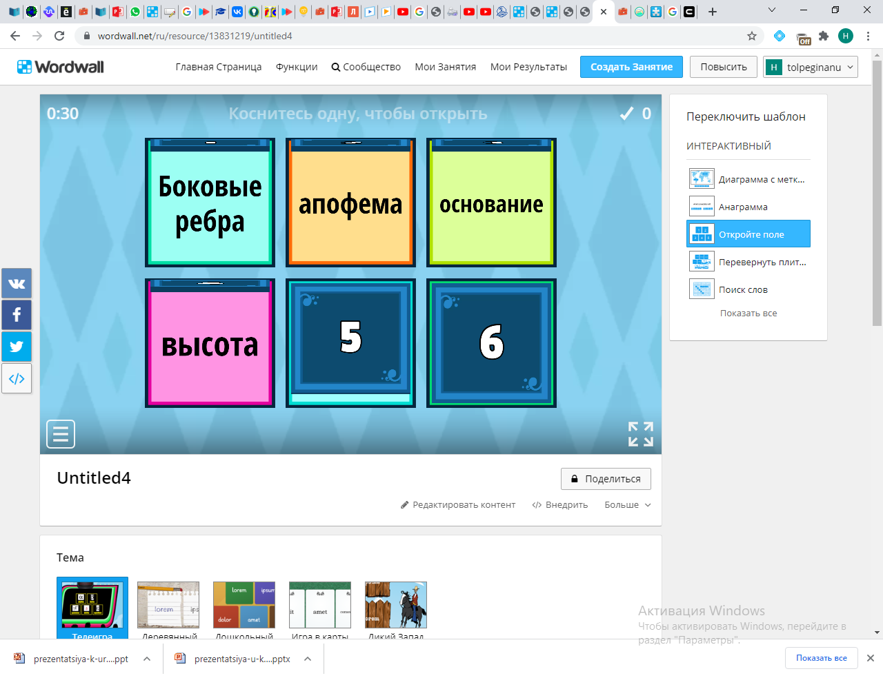 Данный сайт www.wordwall.net представляет собой набор шаблонов, на базе которых вы создаете свои собственные учебные ресурсы в виде упражнений, презентаций, заданий, игр без каких-либо специальных навыков по ИКТ, а затем включаете их в свои уроки, а также для домашнего задания.
