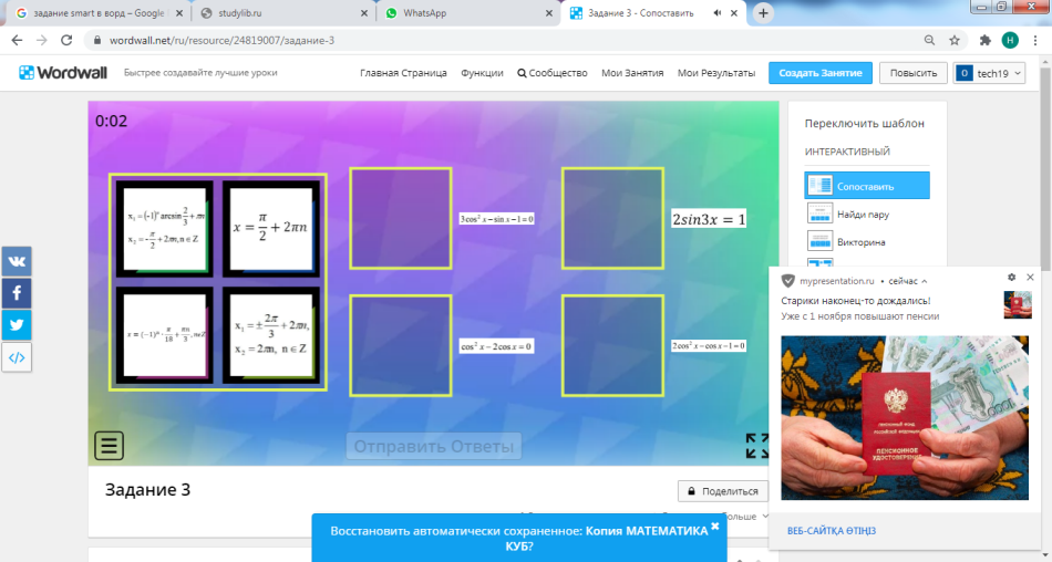 Применение обучающей игровой платформы Wordwall на уроках математики