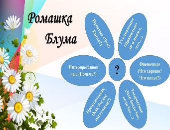 Учитель предлагает по 6 лепесткам «Ромашки Блума» составить по 1 вопросу к тексту.