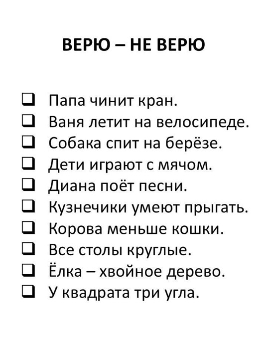 IV. Игра для капитанов групп: Верю и не верю.