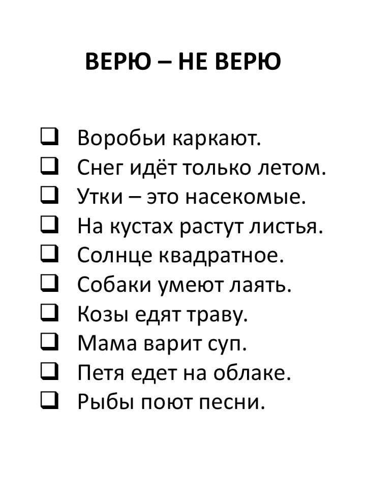 Учащиеся должны ответить верно или не верно.