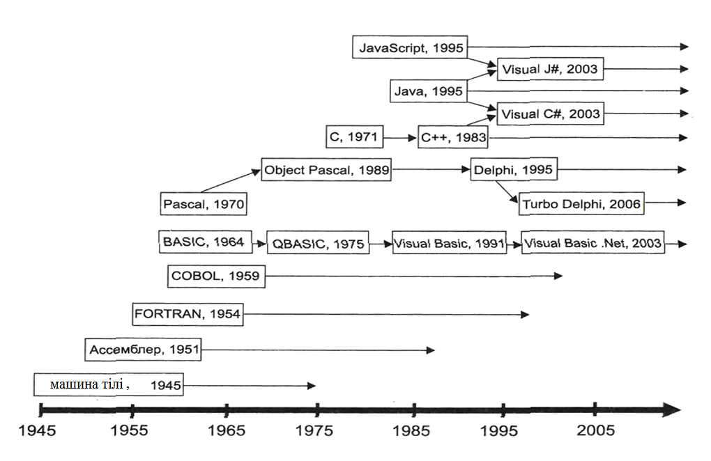 • Программалау тілдерінің шығу уақыттарын бөлшектеп қарастырады. |