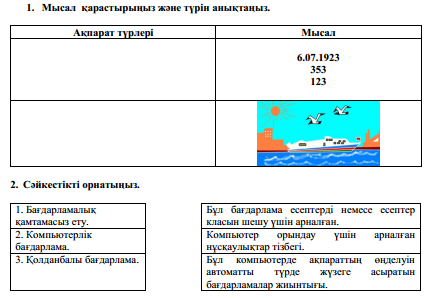 2-тапсырма Көрсетілген компьютерлік программаларды қамтамасыз ету типіне сәйкес бөліп жазыныз
