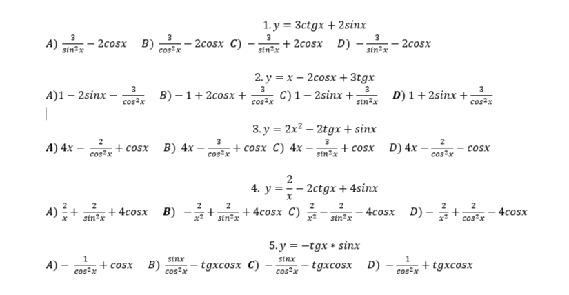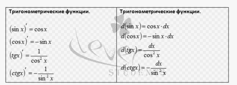10.4.1.23 - находить производные тригонометрических функций; |
