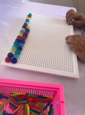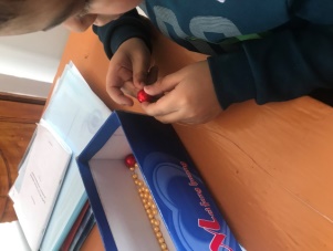 диаметрлі моншақтар беріледі. «Көз-қол» бағдарлауын жетілдіреді.