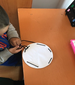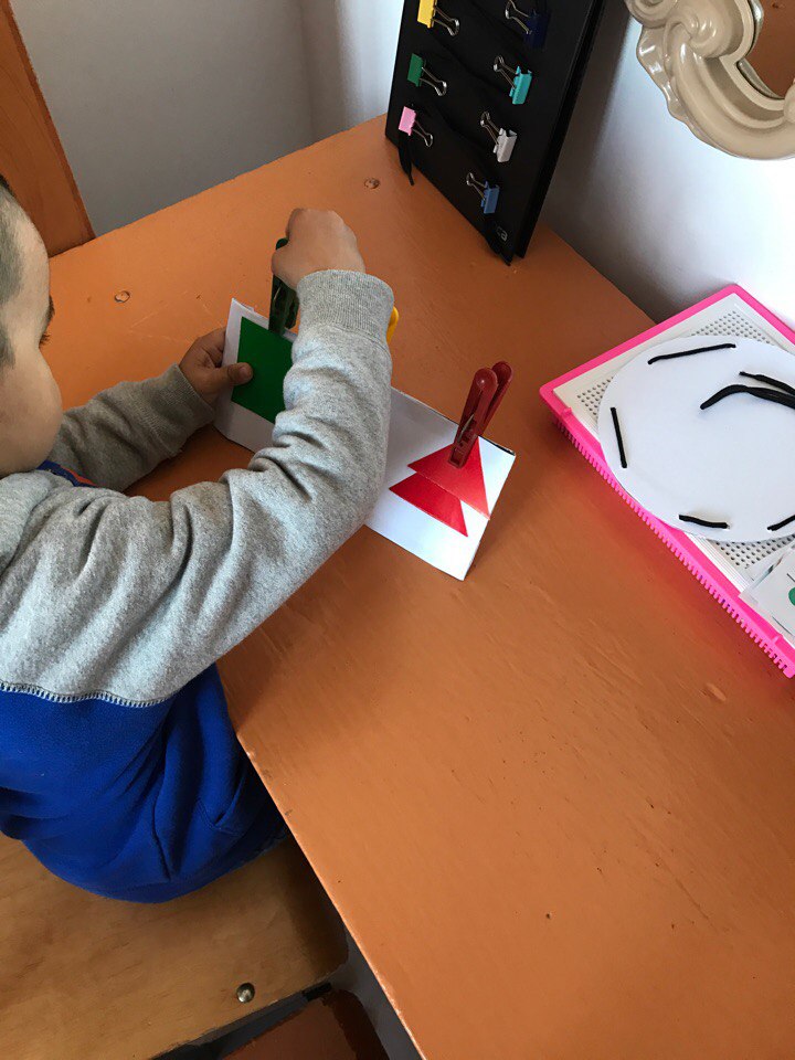 Сонымен қатар, қысқыштармен ойналатын ойындар өте нәтижелі болады. Себебі, ол баланың ұсақ моторикасын дамытады, ақыл-ойының, тілінің дамуына зор ықпал етеді. Түрлі-түсті қатты қағаздардан дөңгелектер жасап, сондай түсті қысқыштарды қыстырса, гүлдер пайда болады.