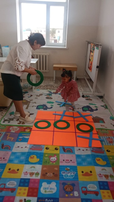 Шарты: Балаға арнайы дайындалған х/0 ойынына арналған шаршы беріледі.Қатысушылар белгілерді кезекпен тастап отырады.Ойынның шарты бойынша 3 қатарға да (қиғаш,ұзыннан,ені) бірдей белгі орналасу керек.Бірдей түсірген ойыншы жеңімпаз атанады.