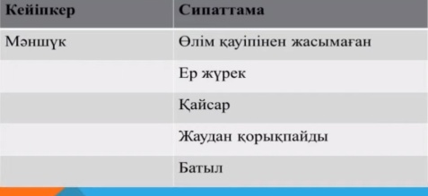 пайдаланып,Мәншүк туралы әңгімелейді Жеке жұмыс
