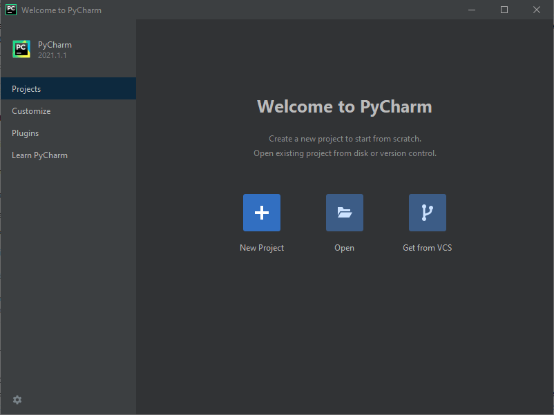 Сурет 3.1 – PyCharm бағдарламасының алғашқы терезесі