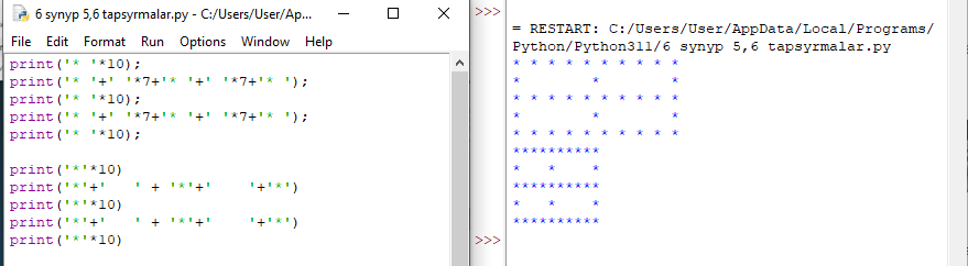 3 тапсырма** Python праграммасының көмегімен төмендегі фигураларды экранға шығар.