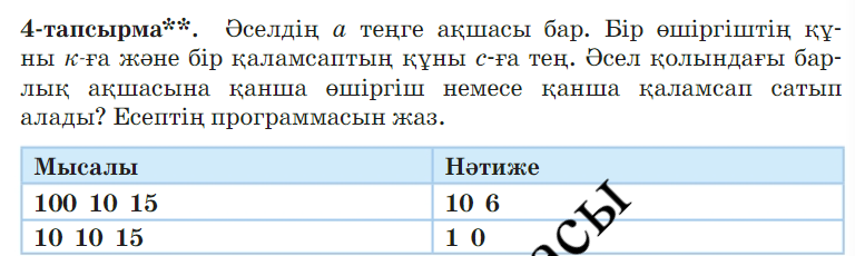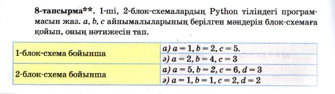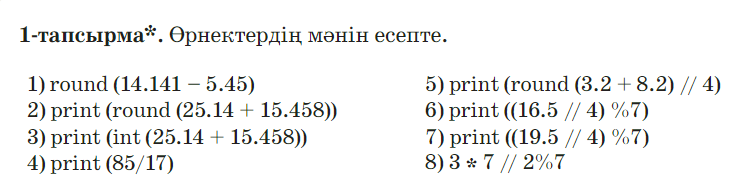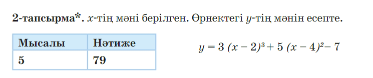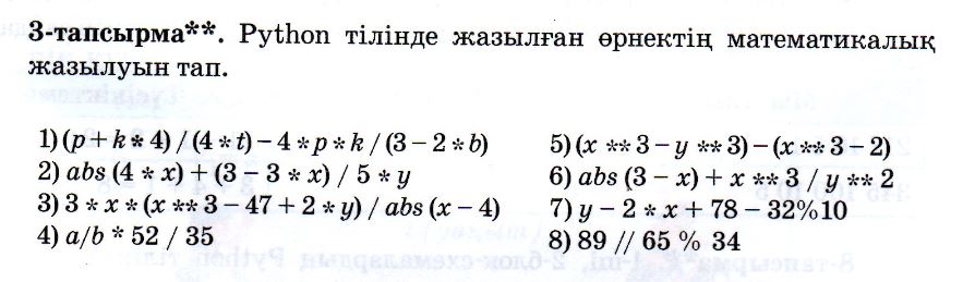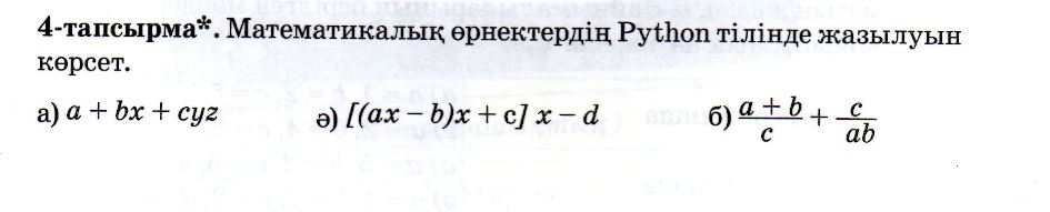 1 тапсырма** Төменде матиматикалық өрнекті программалау тілінде жаз.