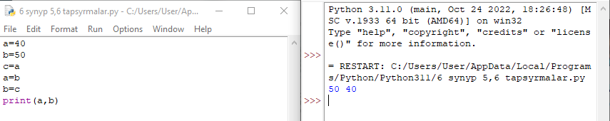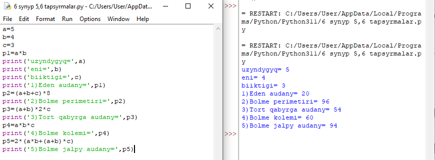 (айнымалымен жұмыс істеген ыңғайлы. Мысалы: а,b,c)