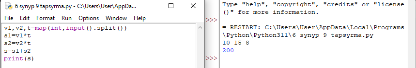 2 мысал: жалпы жеке-жеке қанша қашықтық жүрір өтті десек.