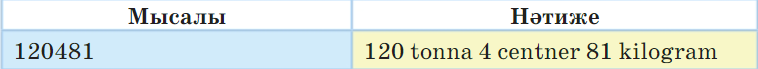 а) Бидайға кезекте тұрған m мемлекетке килограмм бидай экспортқа дайындалды. Осы бидайды тонна, центнер, килограммен өрнектейтін программа құрастыр.