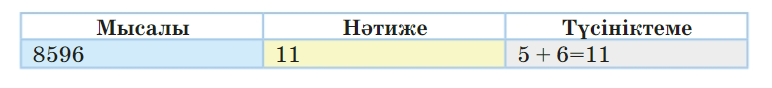 6 тапсырма*** Төрт таңбалы санның екінші (жүздігі) және төртінші орында (бірлігі) тұрған цифрларының қосындысын табатын программа құрастыр.