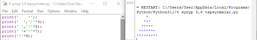 print('Baspaldaq');print('*'*4);print('*'*7);print('*'*11);print('*'*16)