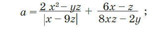 a=(2*x**2-y*z)/abs(x-9*z)+(6*x-z)/(8*x*z-2*y)