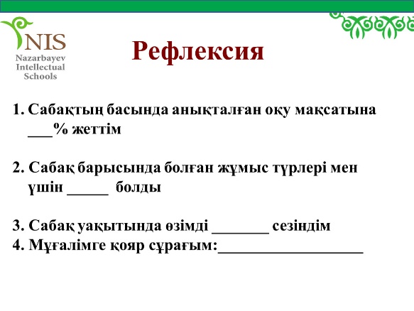 Сабақтың соңы |