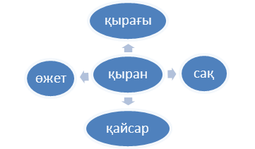 Слайдтан мәліметтер алады. Тақтамен жұмыс жасайды. Жеті қазынаны атайды. Соның ішіндегі Қыранға байланысты 5 сөз қолданып өлең не мағыналы сөйлем құрап ой түйін айтады. Аспан Қыран Күн Бұлт Биіктік т.б. «Кәрі Қыран» өлеңін оқиды. Топ мүшелері «Бағдаршам» әдісі арқылы түсінбеген сөздерін көрсетіп, топ ішінде талқылап анықтайды, мағынасын ашады. Бағалау жүргізеді. Қыранның ерлігін өз сөздерімен баяндайды. Салыстырмалы талдау жасайды.