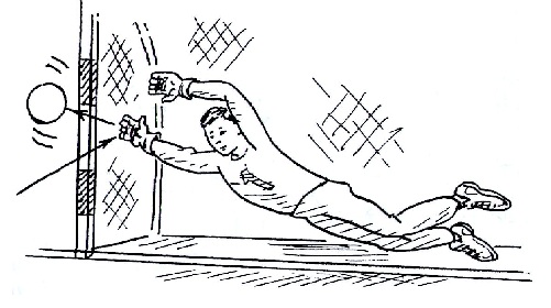 1. Айналысушы қақпашылар негізгі тұрыстан алға қарай еңкею қимылдарын орындайды, алдында жатқан допты ұстап алып, кеудесіне тартып басады және т.б. әрі қарай жалғастырады.