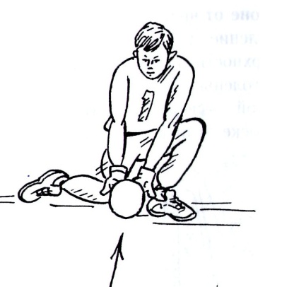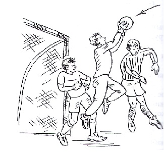 2. Ойыншылар бір колоннаға тұрады. Оларға қарсы тұрған ойыншы, допты колоннадағы бірінші ойыншыға домалатып жібереді. Бірінші тұрған ойыншы қақпашынң ұру қалпын қабылдап, допты қағып алады. Содан кейін, аяғының соққысымен допты кері қайтарады да, колоннаның соңына барып тұрады. 3. Бірнеше ойыншы қақпадан 8-12 адым жерде тұрып, кезек-кезек аяқпен төменнен допты қақпа жаққа бағыттап, әртүрлі күшпен соққылар жасайды. |