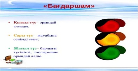 1.Сабақ ұнады, тапсырмаларды орындадым. 2. Сабақта қиындықтар кездесті. 3. Сабақты түсінбедім.