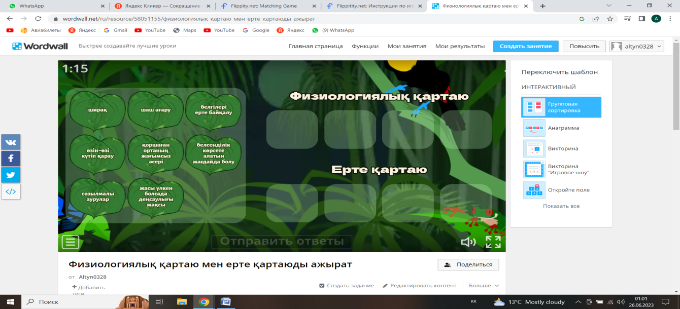 -қартаю құбылысының негізгі заңдылықтарын анықтайды; -қартаюдың теорияларын сипаттайды; -физиологиялық және ерте қартаюдың айырмашылықтарын ажыратады; ЕБҚО: |