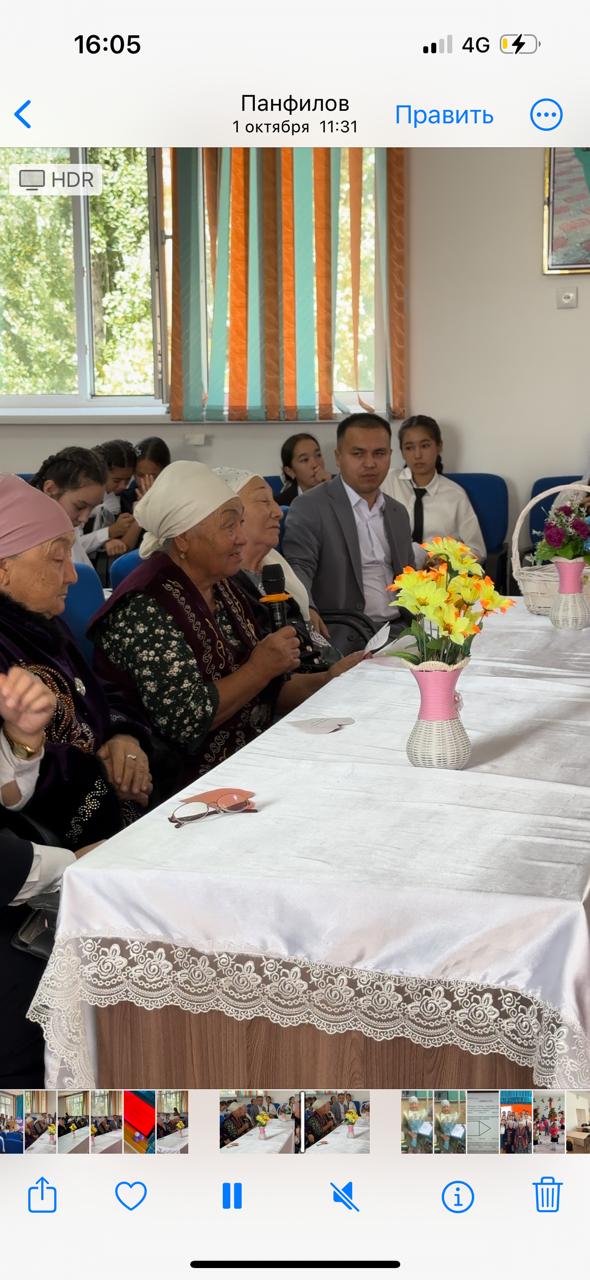 1-жүргізуші: Халқымызда «Қартын сыйлаған елдің қазынасы мол» деген ұлағатты сөз бар. Ендеше сол ұлағатты ізді жалғастыра отырып, біздің бүгінгі ардагер ұстаздарымызды құттықтау үшін сөз кезегін мектеп директоры М. Б. Абдыкасимовке береміз.