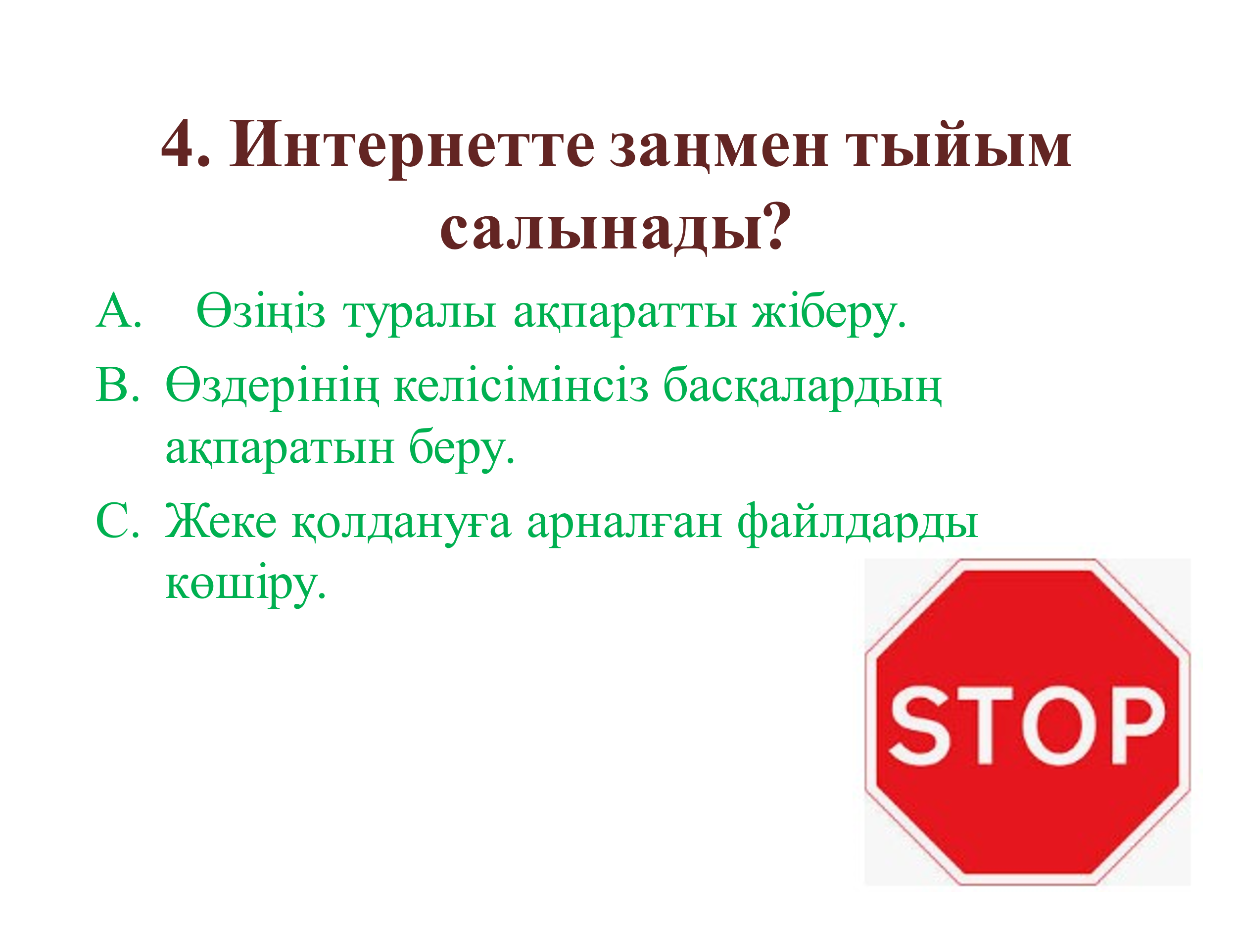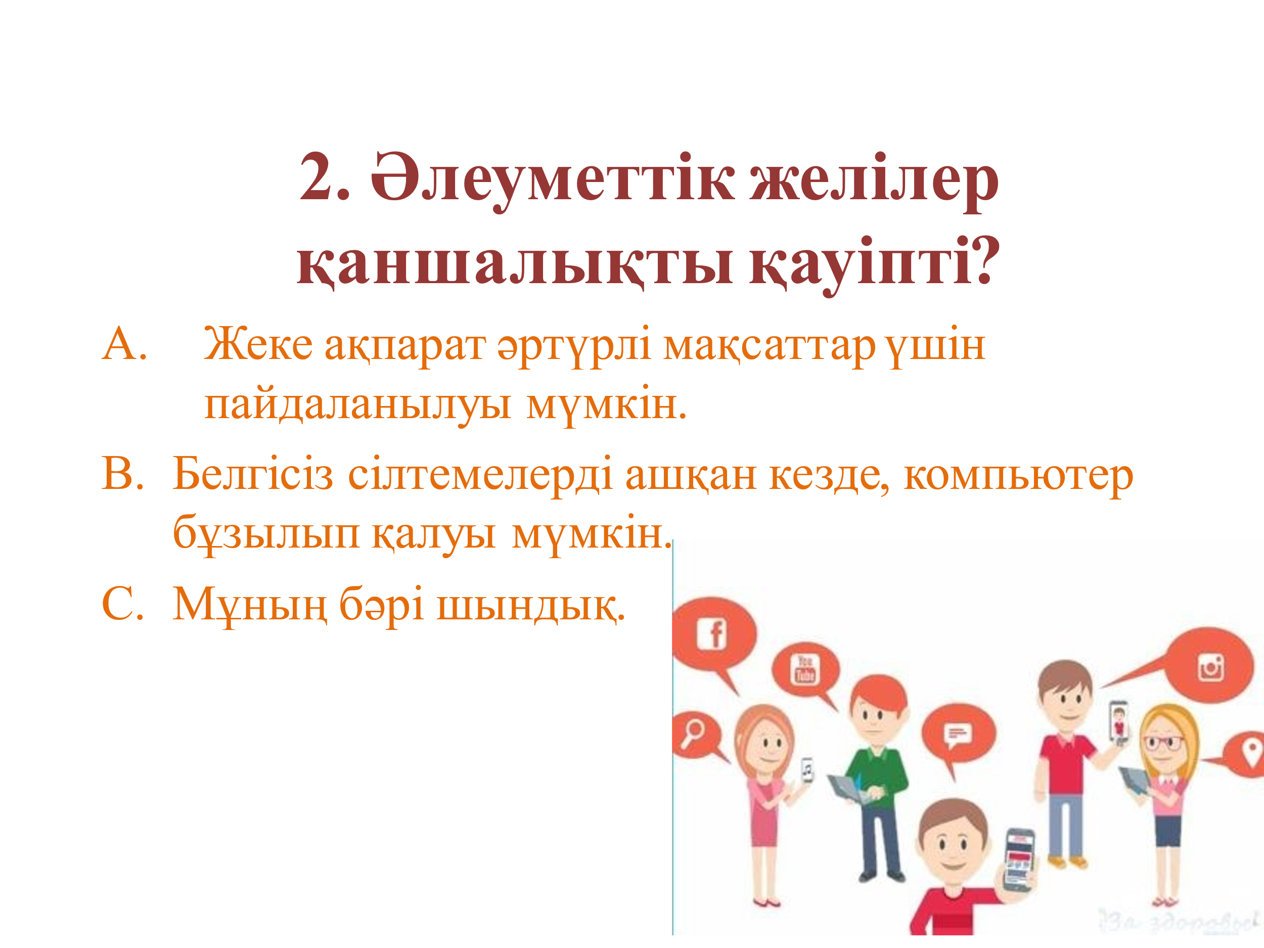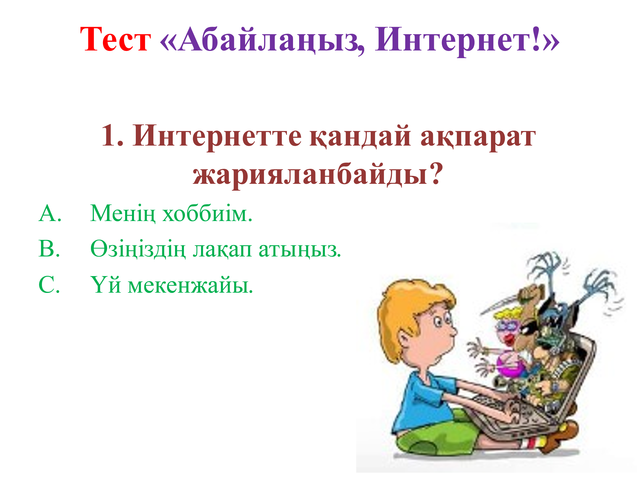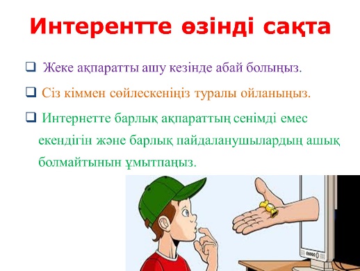 Сабақты қорытынды Қауіпсіздік сағаты № 3-САБАҚ: «Өзіңіз туралы жеке ақпаратты беру қауіп»