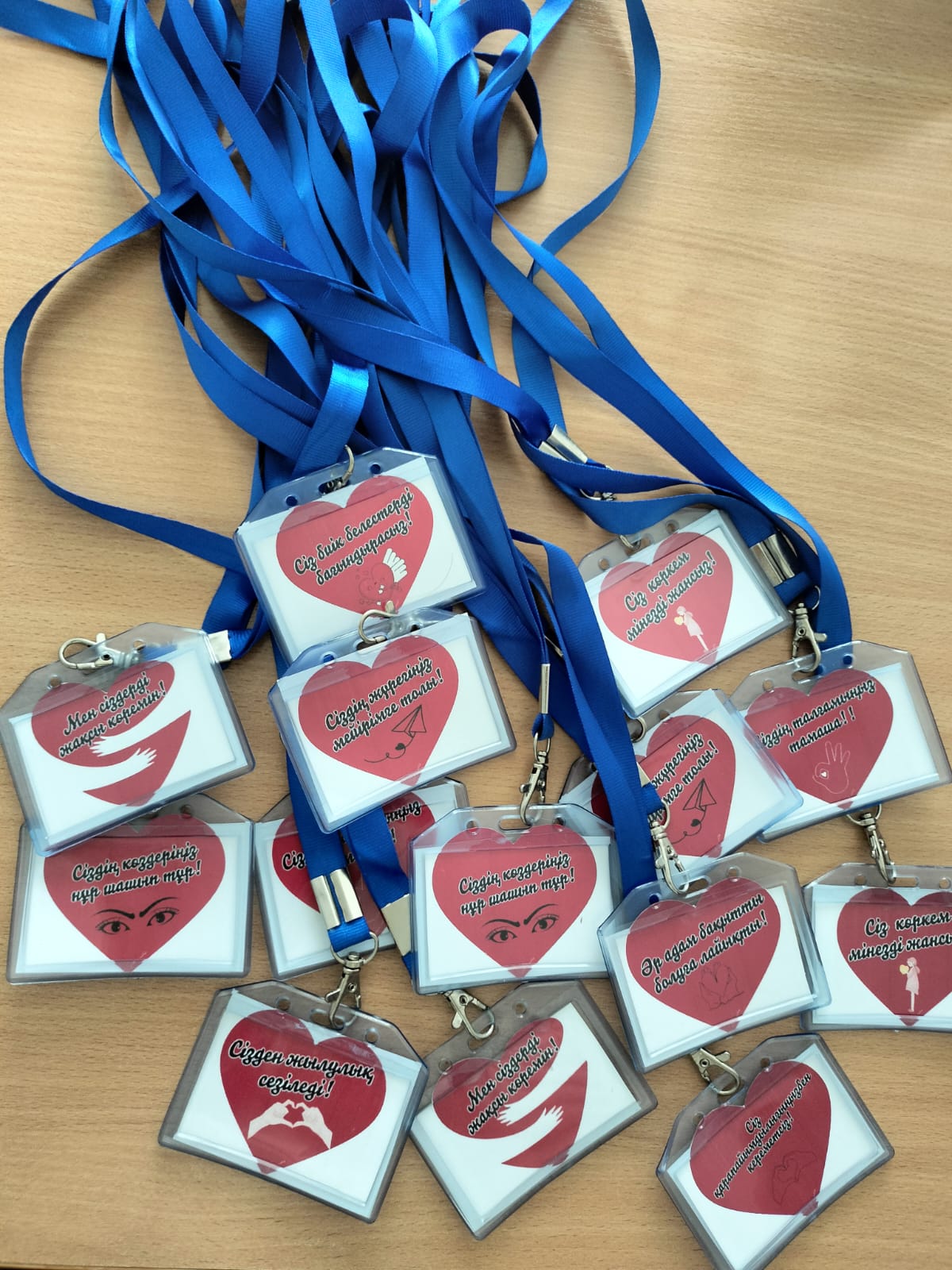Қатысушыларды шеңбер бойымен орналастырып, өздерінің есімдері мен есімдеріне сай қасиеттерін атау сұралады. Әр қатысушыға өзінің есімін және бойындағы қасиетін атағаннан кейін әдемі сөздер жазылған жүрекшелер салынған бейджиктер оқушылардың әрқайсысының мойнына кезекпен ілінеді.