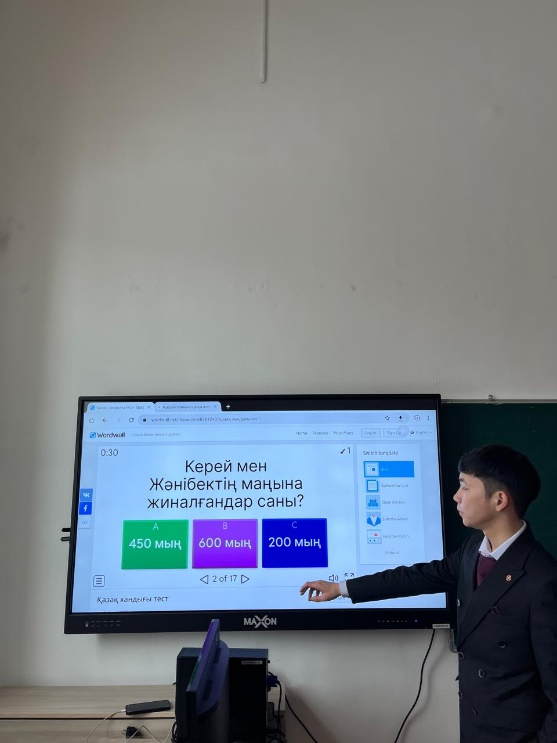 Оқушылар Wordwall викторинасына өздерінің смартфондары немесе мұғалімнің интерактивті тақтасы арқылы қатысады. Әр оқушы немесе топ ең көп ұпай жинауға тырысады. Нәтижелер экранда көрсетіледі, жеңімпаз топ марапатталады. |