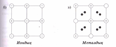 10.2.1.5 - Кристалдарды байланыс түріне қарай классификациялау (иондық, коваленттік, металдық, молекулалық).