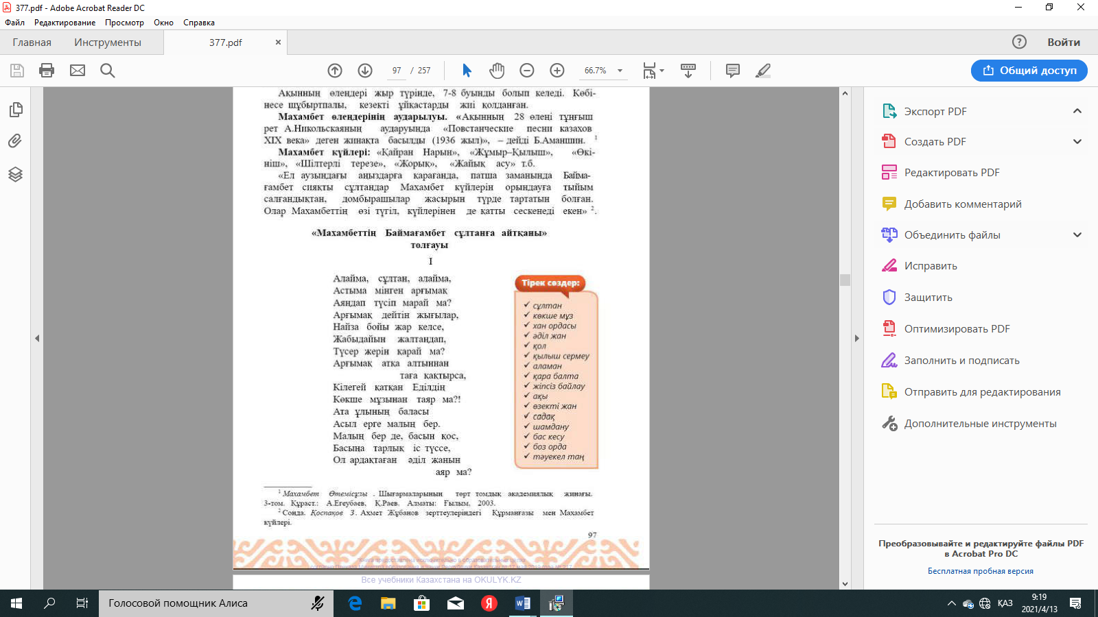 №1-тапсырма: Өлеңдегі көнерген сөздерді теріп жазыңдар. |