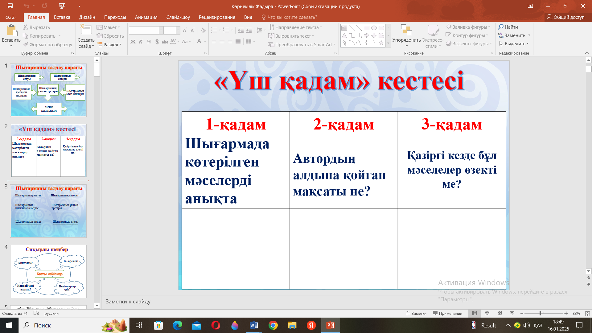 Жазылым: «Үш қадам» кестесін толтырады |