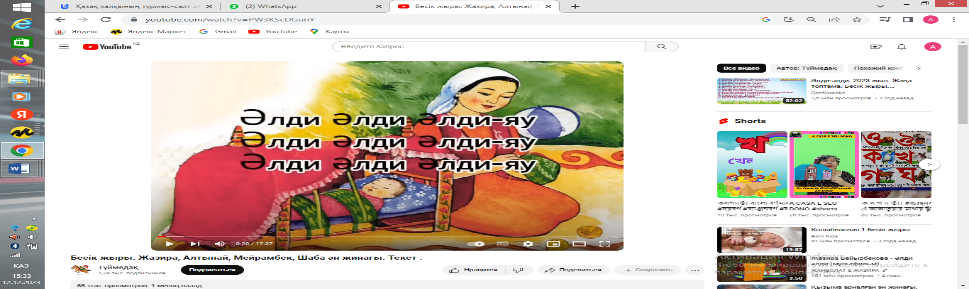 «Бесік жыры» әнін орындау. Дауыс ашу жаттығуы. (ля-ля-ля-ля ля-ля-ля до-ре-ми-фа-соль, соль-фа-ми-ре-до) Сабақтың тақырыбы, мақсаты анықталады. Тақырыпты ашу Бейнеролик