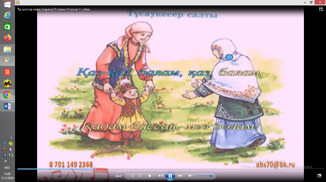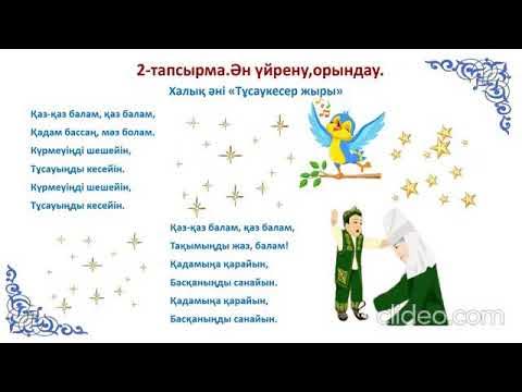 қаз қаз балам әні видеоматериалдарды көрген соң пікірталасқа арналған сұрақтар: видеороликте не байқадыңдар? Салт-дәстүр дегенімізді қалай түсінесіңдер? Қандай салт-дәстүр жырын тыңдадыңдар? «Тұсау кесер» салты туралы толық мағлұмат беріңдер?