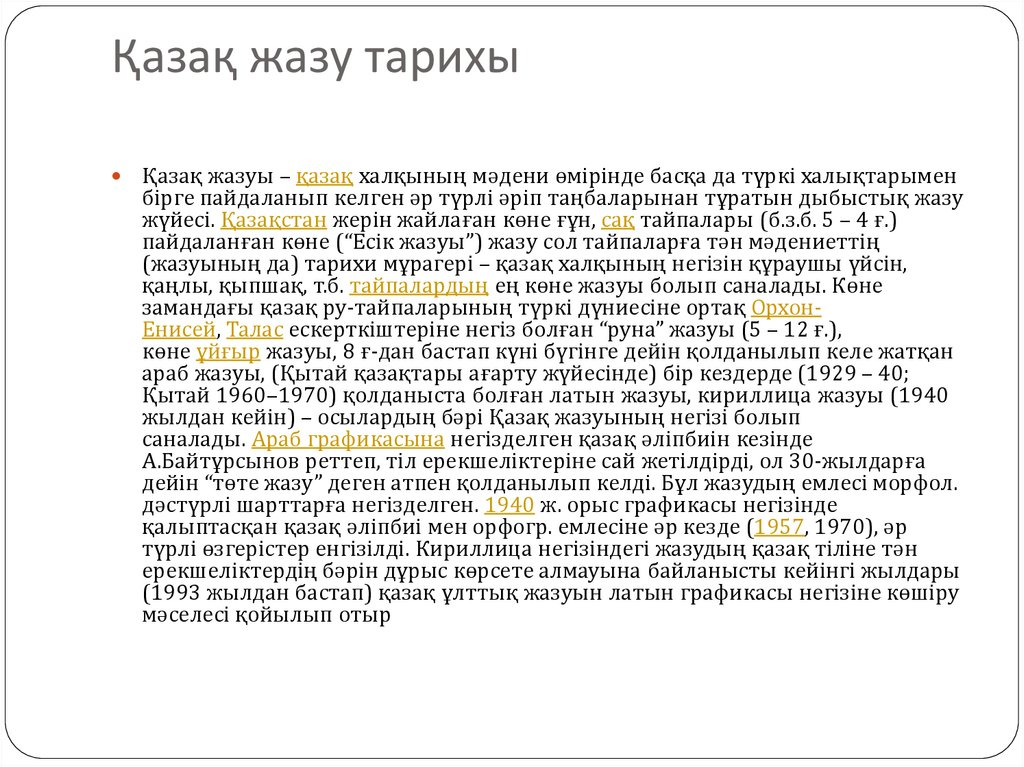 Сабақтың тақырыбы: Қазақ жазуы