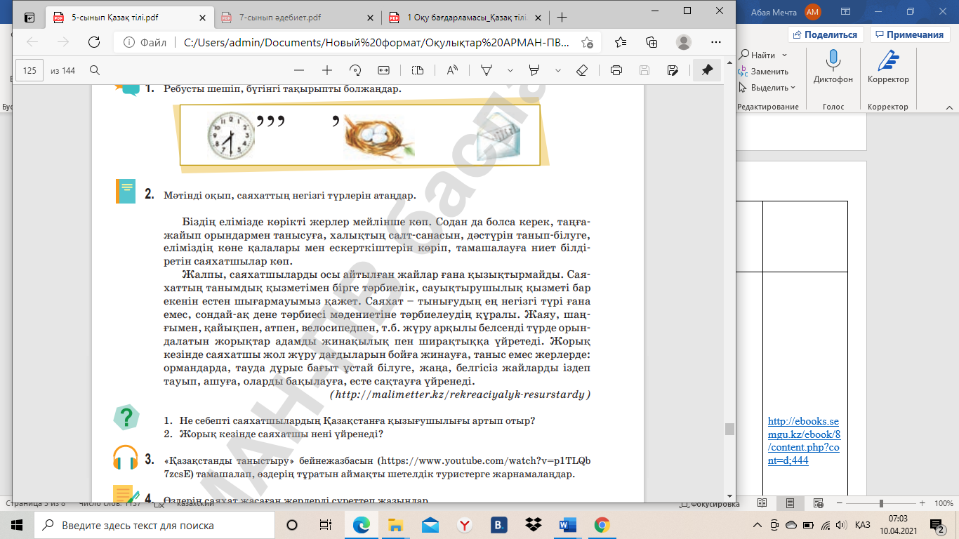 (http://malimetter.kz/rekreaciyalyk-resurstardy) https://www.youtube.com/watch?v=p1TLQb 7zcsE |