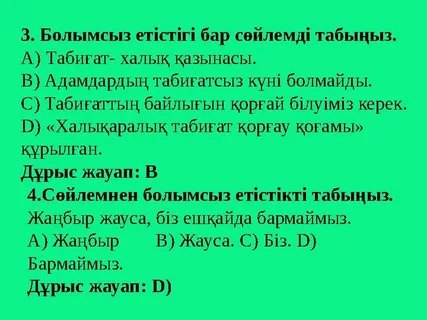 Болымды және болымсыз етістік туралы білімдерін нығайтады |