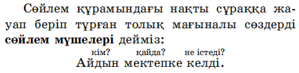 сөйлем туралы білетіндеріңді еске түсіріп