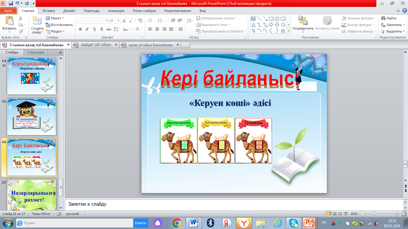 Сабаққа кері байланыс жасайды. Жинаған балдары бойынша рефлексия жасайды.