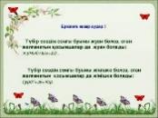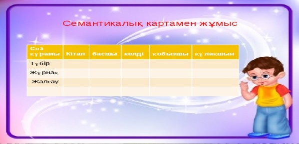 Мақтап, мадақтап отыру Дескриптор: Сұрақтарға жауап жазады-1б. Тамаша! Дескриптор: Мәтінді тыңдайды -1б Сұрақтарға жауап береді-1б Кереметсіңдер! Керемет! Дескриптор: Ережені жаттап, мағынасын түсінеді-1б Сен мықтысың! Дескриптор: Көп нүктенің орнына тиісті сөздерді қойып, сөйлем құрап жазады-1б Сөздердің өзара байланысын біледі-1б Керемет! Мен сенімен мақтанамын! Дескриптор: Сурет бойынша әңгіме құрайды-1б Жұбына баяндайды-1б. Оның құраған мәтініне өз пікірін білдіреді-1б. Тамаша! ДескриптоР: Семантикалық картаны толтырады-1б Жуан және жіңішке жазылатын қосымшаларды ажырата алады-1б Тамаша! |