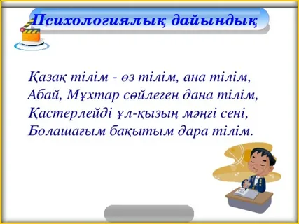 Өткенді пысықтау Үй тапсырмасы 12-жаттығу Құрамында б және л дыбыстары бар сөздер құрастырып айт. Бұлан Бұлан орманда мекендейді. Бұлақ Бұлақтан су алды. Балық Балықтар ағынға қарай жүзді. Сол сөздерді қатыстырып сөйлем құрап жаз. Бастауыштың астын – бір, баяндауыштың астын екі сызықпен сыз. Жаңа тақырып ФС тапсырмасы Құндылық мақсаты: Өз елінің тарихы, мәдениеті туралы алғашқы түсінікті қалыптастыру 13-жаттығу Мәтінді тыңда. Мәтіннен өзіңе қандай жаңа ақпарат алдың? Әйгілі Ақан серінің тұлпарының аты «Құлагер» екенін білдік. Құлагердің мүсіні мыстан жасалған екен. Ол ескерткіштің қай жерде салынғаны жайлы ақпарат алдық. Ақан серінің кім екені жайлы еске түсірдік. Ол ақпараттар саған ұнай ма? Ұнаса, неліктен?