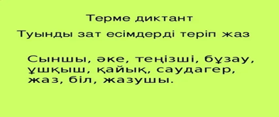 Дескриптор: Сұрақтарға жауап береді-1б Туынды зат есім жасауға болатын негізгі зат есімдерді табады-1б