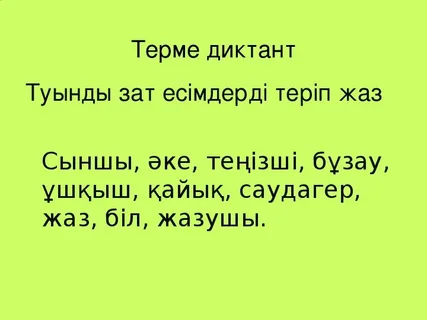 Дескриптор: 1-деңгей: Көп нүктенің орнына негізгі және туынды зат есімді қойып жазады-1б