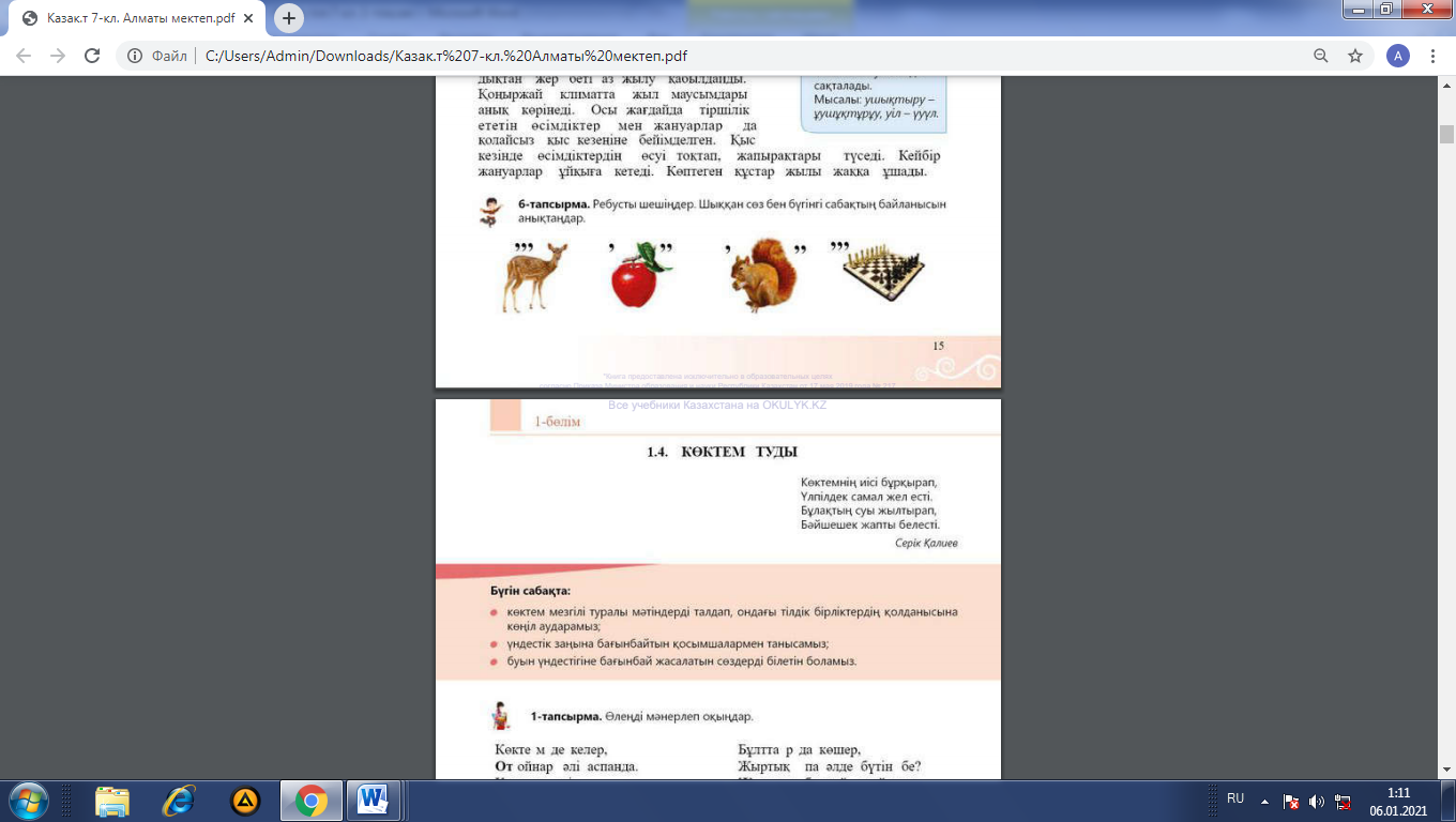 №1-тапсырма. Мәтінді оқы. Оқулықта берілген мәтінді оқиды. |
