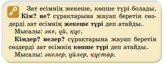 №94 сабақ. Зат есімнің жекеше және көпше түрі |