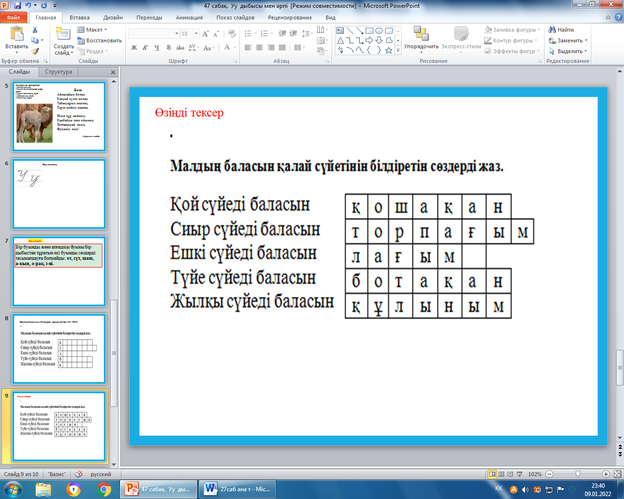 жұмыс дәптері №1 (28-б) сөз жұмбақты шешеді, өзін-өзі бағалайды |