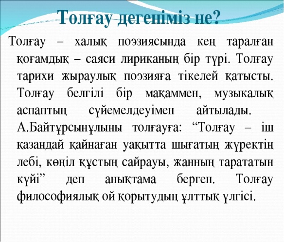 «Шалкиіз жырау – заман жыршысы» тақырыбында эссе жазады.. Шығарманың көркемдік-идеялық құндылығын нақты көрсетіп, гуманистік тұрғыдан талдау жасайды.